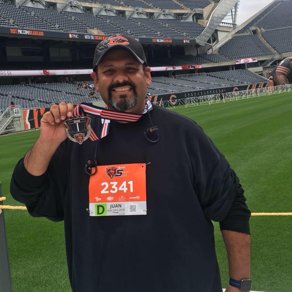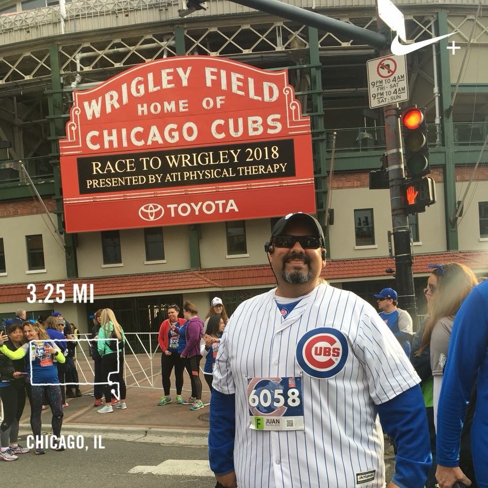 Before the start of the race, the announcer wanted to acknowledge the top three fundraisers. They called out 3rd place, then 2nd Place. Time seemed to stand still before they announced the winner. Finally, 1st place was announced: Juan Acevedo. My family began to cheer and yell! People around me had no idea who I was, but I was the official winner of the fundraising campaign. I was told to go to the main stage area. I met with a few Cubs representatives and they said to come back after the race for pictures. I felt like a celebrity. But it quickly set in that I might be a hot mess after the race because I'm not your typical marathon runner. I wasn’t sure if I was going to be photogenic enough after the race. I shook hands and the representatives wished me luck on my race. The thousands of people walked to their assigned start gate corrals. I was assigned to corral letter F. My family said they were all going to be around the finish line to cheer me on. The National Anthem was sung prior to the start. I can honestly say this was that emotional point where I felt I had accomplished something big. At 9:00 A.M. the announcer started the race and I thought it was going to start off with a sprint or major stampede, but because of the thousands of people it was more like a slow walk. The announcer counted down the corrals A through E, and by the time that he got to F I could see the START line. I set my timer and my music on my head phones and the walk now became a slow jog. This was it, I was doing it - the start of my first 5K.