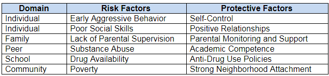 There are several factors that help to predict whether or not an individual is at risk for substance abuse or addiction. NIDA shares that “Risk for addiction is influenced by a combination of factors that include individual biology, social environment, and age or stage of development.” Some examples of risk and protective factors include: